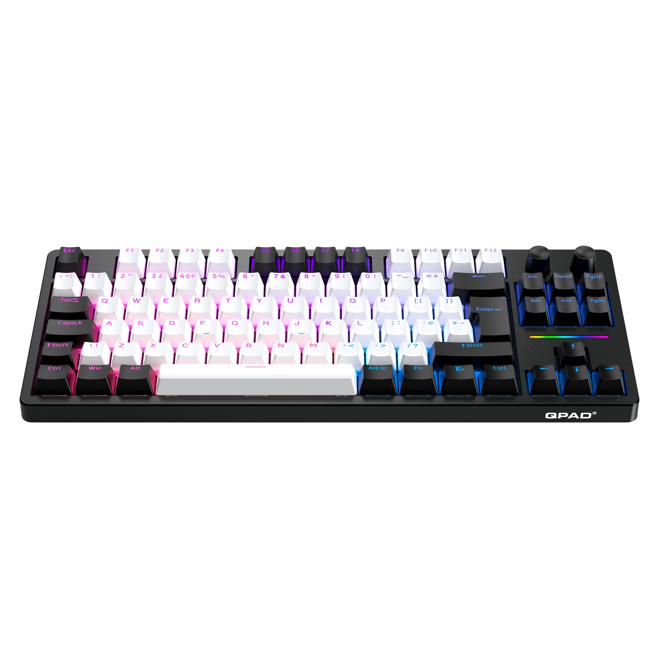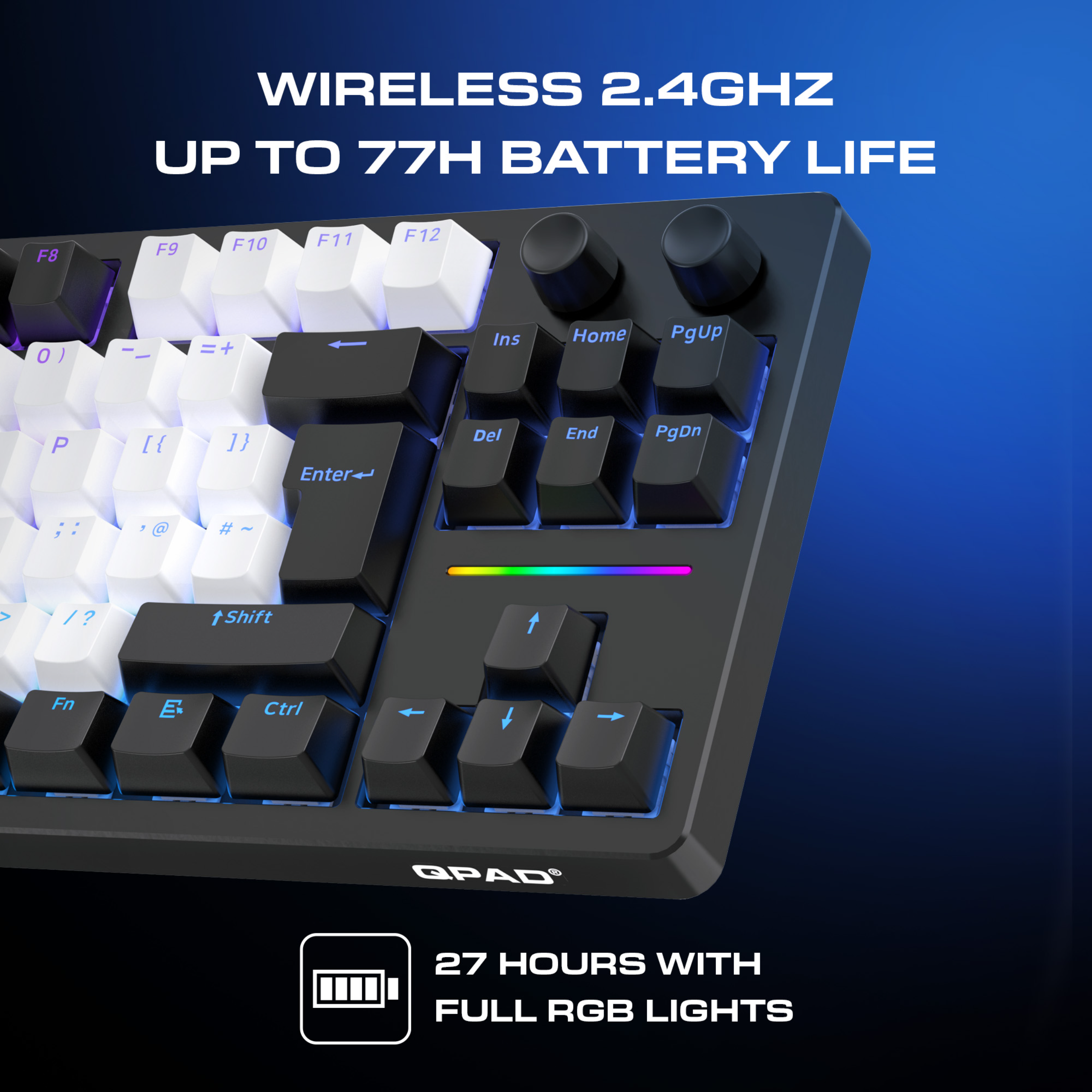 QPAD LOOP TKL Model 3 – Wireless Gasket Mechanical Gaming Keyboard: 80% TKL, tri-mode connectivity (BT, 2.4 GHz & USB), QPAD touch bar, dual sound wheel, RGB lighting.