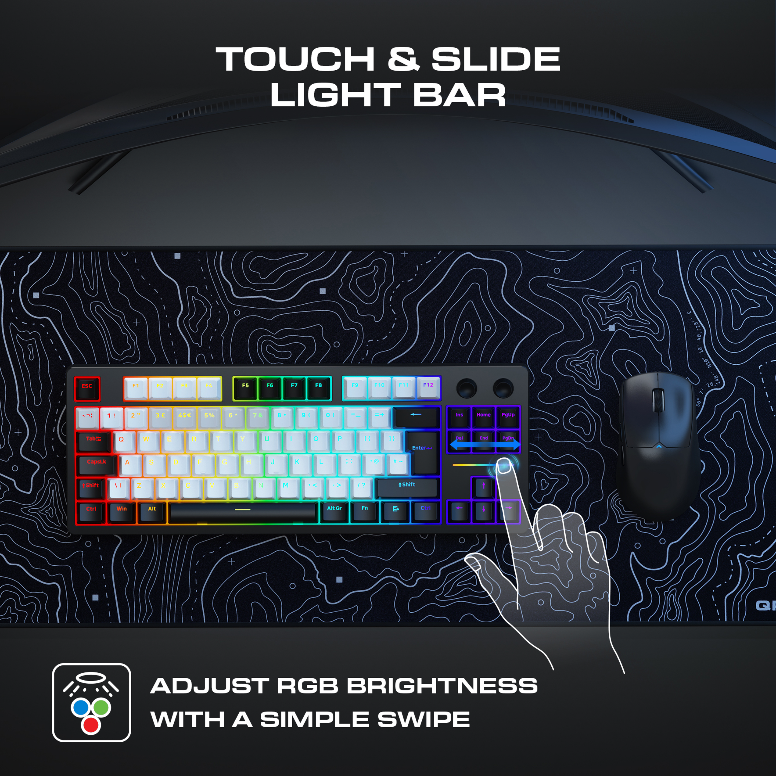 Enhance your gaming and typing experience with the QPAD LOOP TKL Model 3 – Wireless Gasket Mechanical Gaming Keyboard, featuring tri-mode connectivity (Bluetooth, 2.4 GHz & USB), an 80% tenkeyless form factor, QPAD touch bar, dual sound wheel, and customizable RGB lighting.
