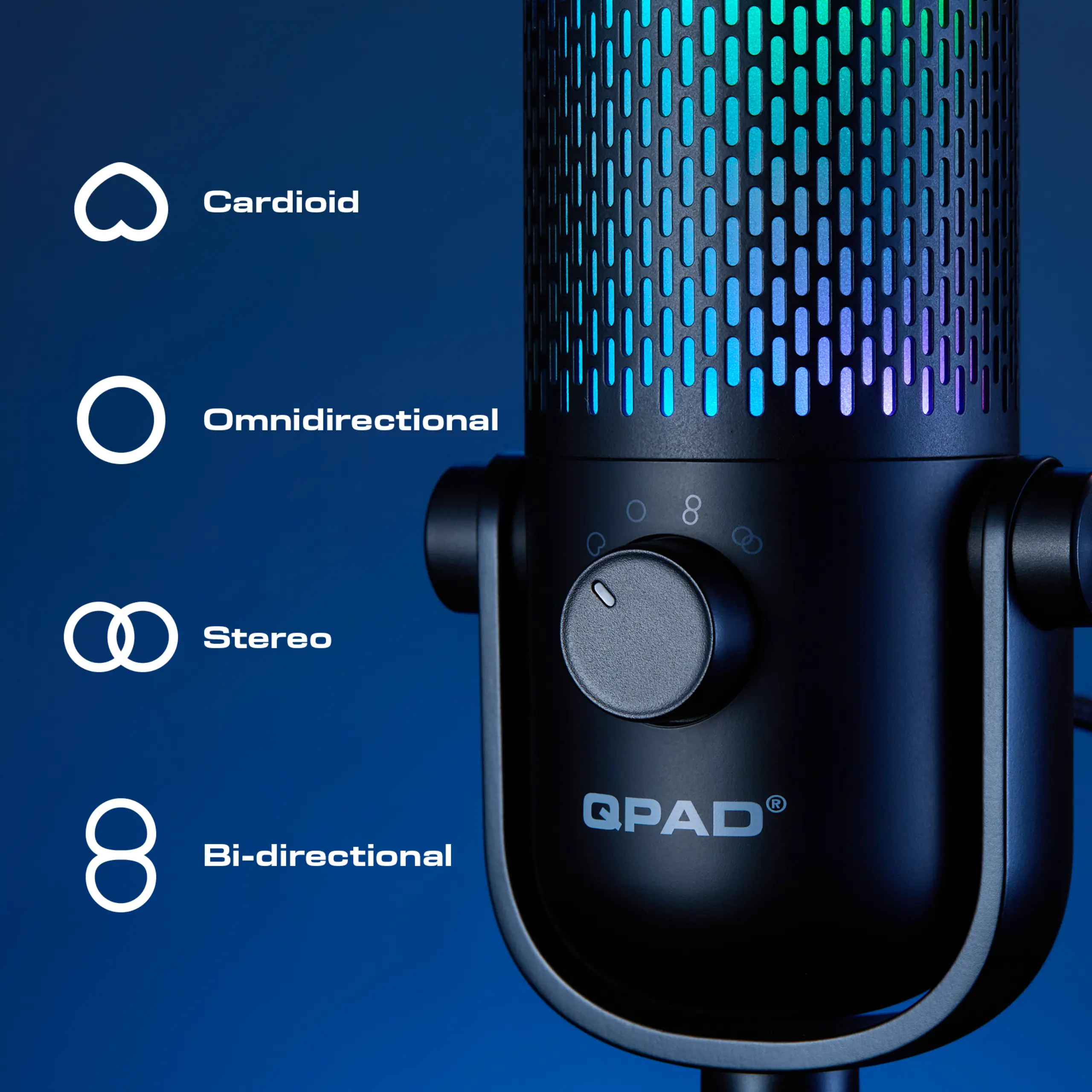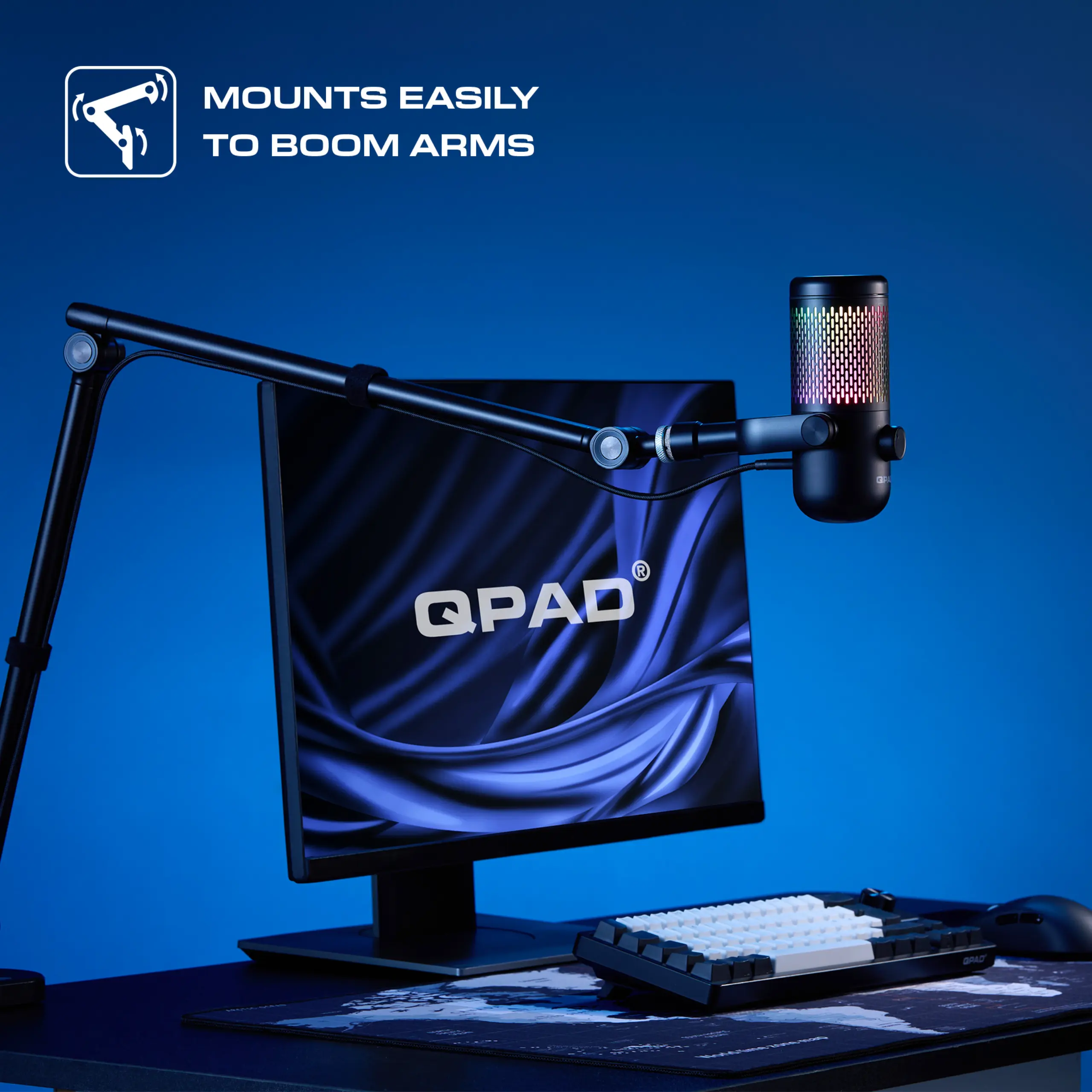 QPAD Omnibeam Stream Pro: Cardioid microphone with 24-bit Hi-Res Audio, easy connectivity, and universal arm compatibility – perfect for streaming, podcasting & content creation.